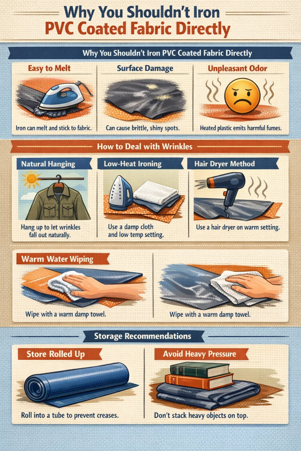 Se encontrar vincos visíveis no tecido revestido de PVC, você pode tentar os seguintes métodos mais suaves: