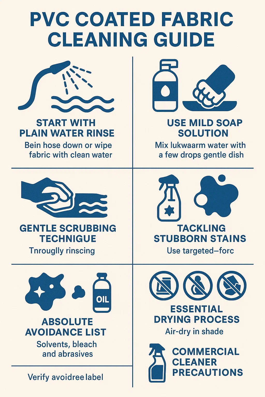 Aqui está um guia prático para limpeza Tecidos revestidos de PVC com base na experiência comum e cuidado material: