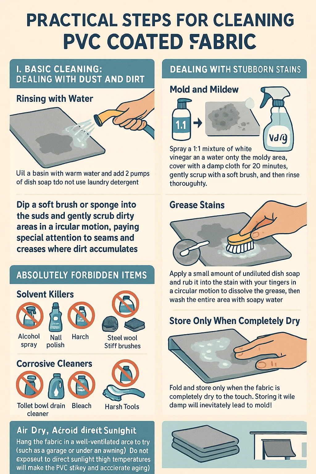 Aqui estão etapas práticas para limpeza Tecido revestido de PVC :
