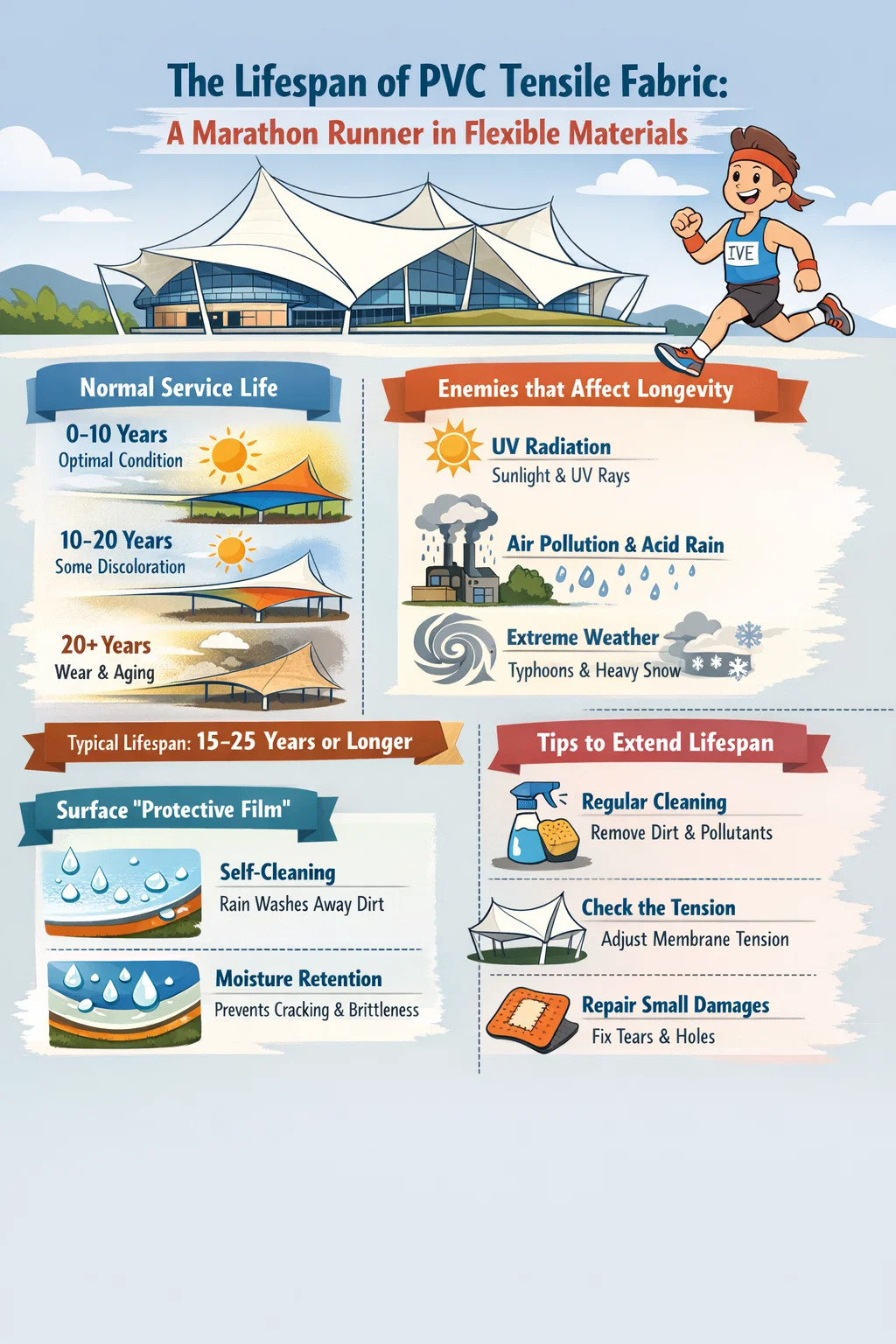 Em relação à vida útil de Tecido elástico de PVC , simplesmente, é como uma “concha” de alta tecnologia que pode acompanhar um edifício por um período considerável. Embora possa não durar cem anos como tijolos e telhas, é definitivamente um “maratonista” duradouro no mundo dos materiais flexíveis.